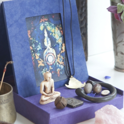 Je persoonlijke altaar, met je eigen favoriete afbeelding, klap je gemakkelijk uit de doos. Neem het mee op reis of creëer een uniek plekje in je huis. Dingen die je op het altaar wilt plaatsen kun je ook in de doos bewaren. Fairtrade en met respect voor het milieu gemaakt in Nepal van handgeschept papier.