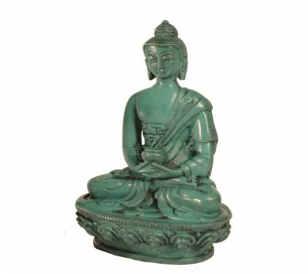 Vredig Boeddhabeeldje, gegoten en groen beschilderd.