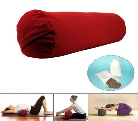Bolster rond – rood – gevuld met boekweitkaf – voor herstellende yogahoudingen en diepere ontspanning