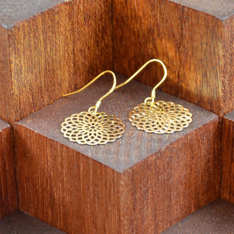 Deze oorbellen zijn een variatie op de meerdere ronde oorbellen die al in de collectie zitten. Deze zijn een beetje mandala achtig en echt heel fijntjes en secuur bewerkt. De haakjes van de oorbellen zijn van verguld sterling zilver.