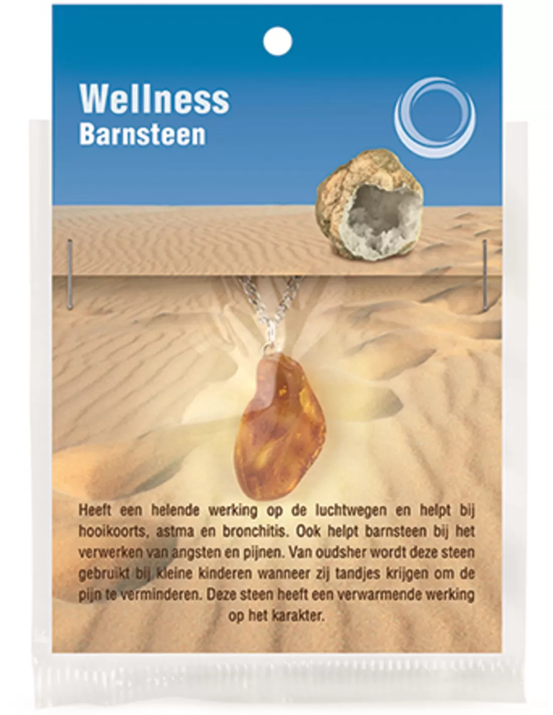 Barnsteen is gefossiliseerd, verhard dennenhars waar in je soms ingesloten luchtbelletjes of fossielen(insecten) ziet zitten. Het is een zeer krachtige reinigende steen die negatieve energie makkelijk tot positieve energie omzet. Barnsteen schenkt je evenwichtigheid en stabiliteit. Hij versterkt een open en zorgeloze houding wat maakt dat je vrolijk en vol zelfvertrouwen in het leven staat. Barnsteen is heel erg zacht en licht en kan beschadigen of smelten onder invloed van zuren, oplosmiddelen en vuur. Kleine stukjes Barnsteen worden soms verhit en samengeperst tot een groter stuk voor verwerking in sieraden. Doordat natuurlijke barnsteen kostbaar is, wordt het nagemaakt van kunststof/hars. Echte barnsteen kan moeilijk van namaak te onderscheiden zijn.