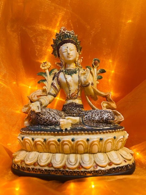Kleurrijk beeld van de Vrouwelijke Boeddha Groene Tara.