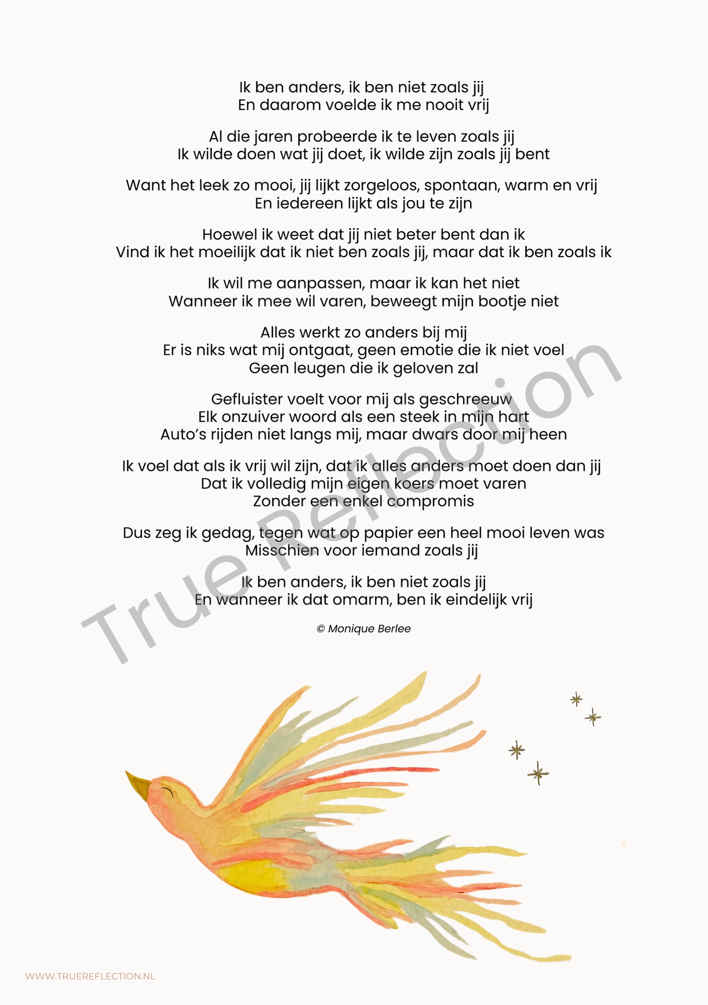 Gedicht over anders zijn gedrukt op A5 kaart met stevig gestructureerd papier.