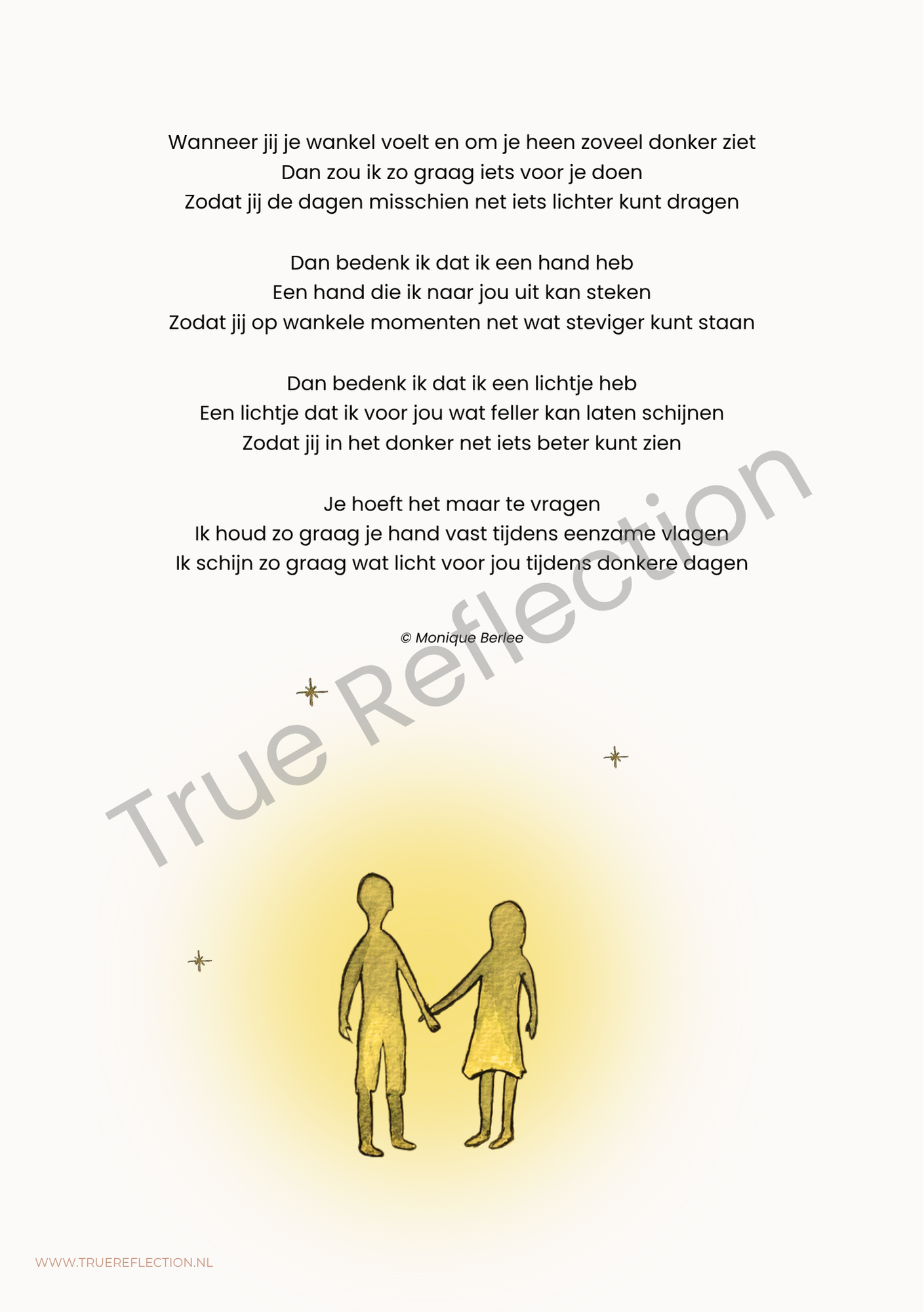 Gedicht dat troost biedt aan iemand die door een moeilijke tijd gaat. Bedoeld om iemand een hart onder de riem te steken.