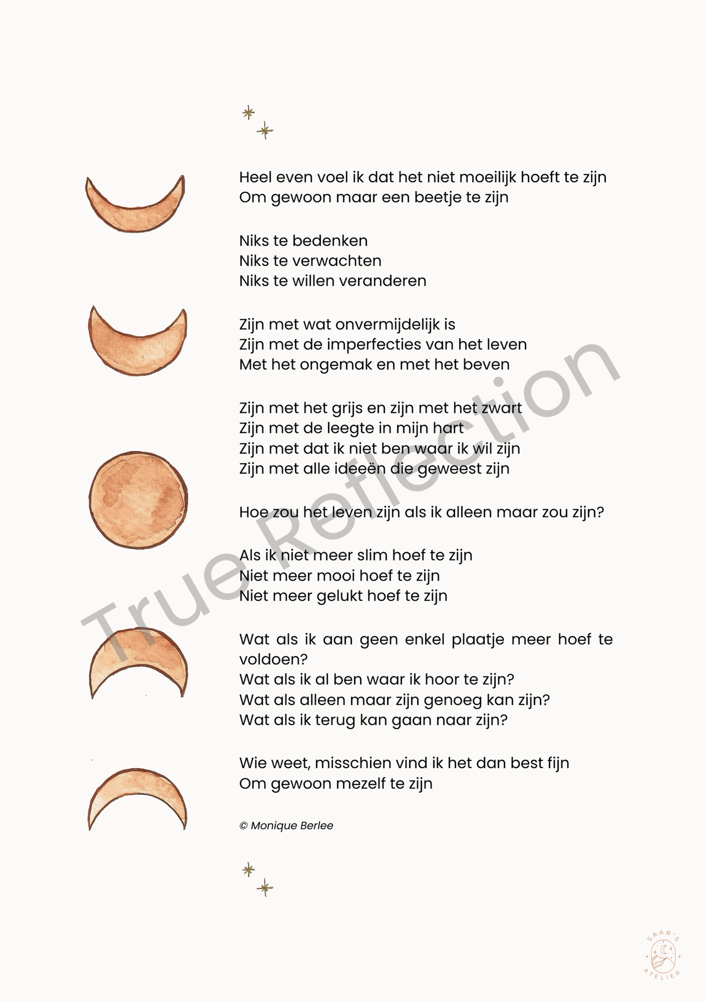 Gedicht over volledig aanwezig zijn in het moment (alleen maar zijn) gedrukt op A5 kaart met stevig gestructureerd papier.