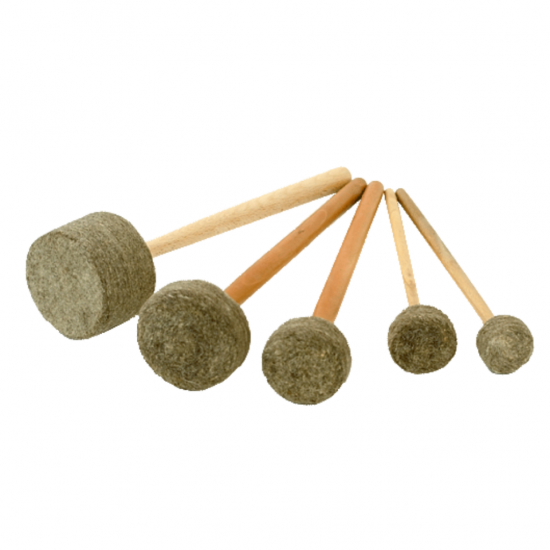 Klankschalen viltkloppers – set van vier: S-M-L-XL – houten steel