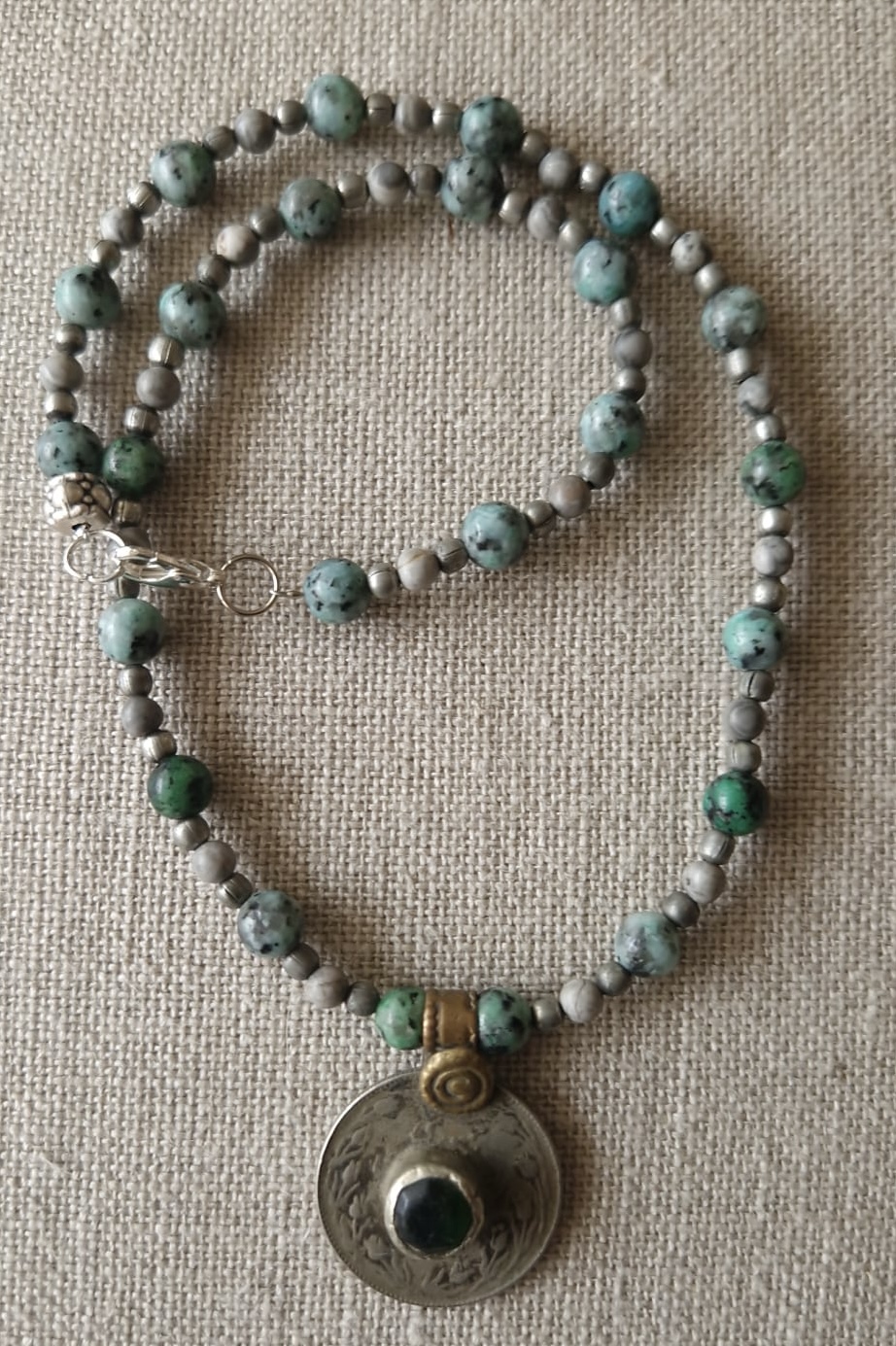 Kuchi hanger met oude munt en glazen kraal uit Afghanistan