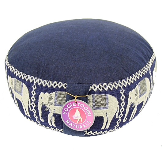 Meditatiekussen – donkerblauw met olifanten rondom zijkant – opdruk