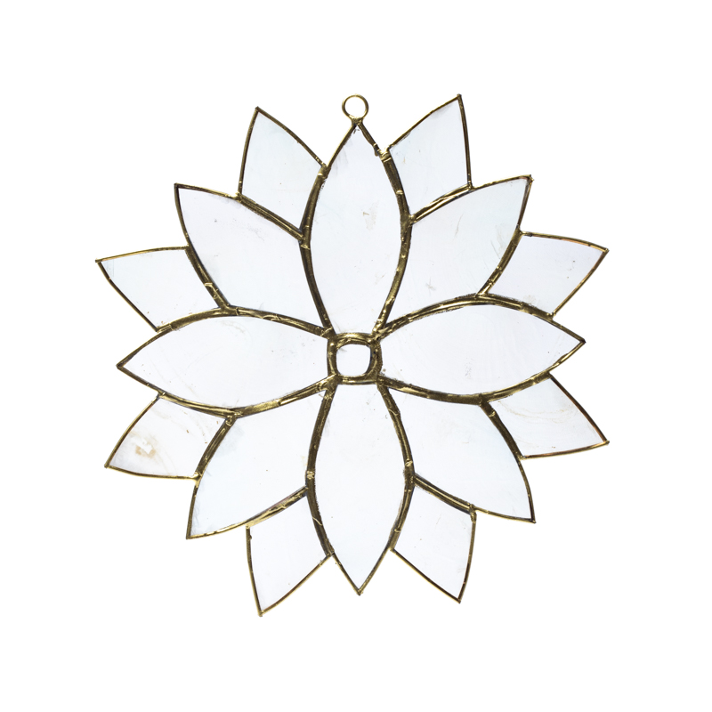 Sierlijke raamhanger van natuurlijke Capiz schelp, in de vorm van een lotus met 16 bloemblaadjes.