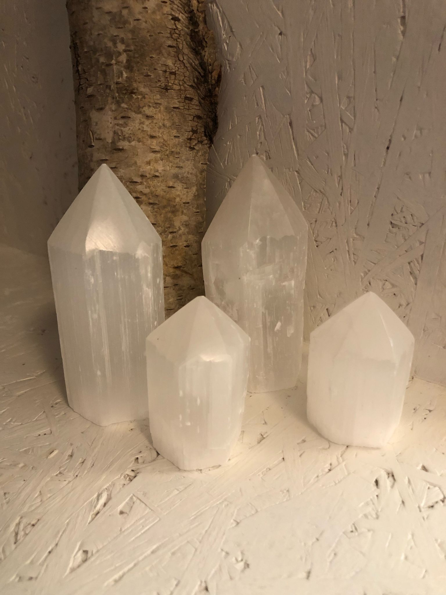 Seleniet, genoemd naar de Griekse godin van de maan Selene, symboliseert maanlicht en staat voor helderheid, puurheid, vrede en vibrationele bewustzijn.