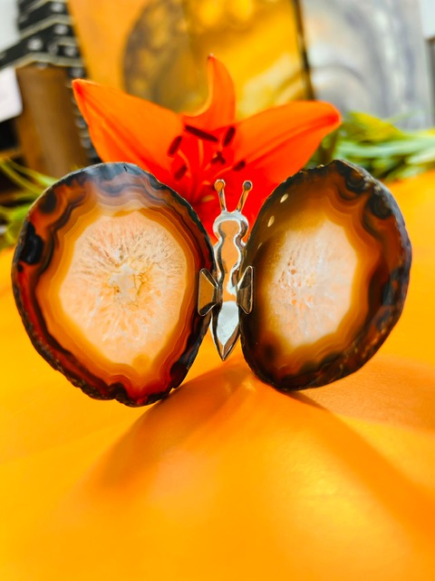 Deze agaat vlinders zijn met zorg geslepen uit natuurlijk gesteente, stuk voor
