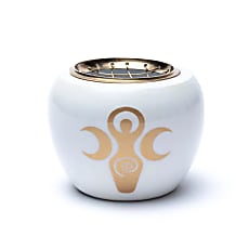 Deze wierookbrander is verkrijgbaar in wit met goud, en in zwart met goud.