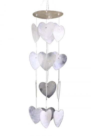 Vier strengen van vier schelphartjes maken nauwelijks geluid in de wind, maar je hoort ze fluisteren.