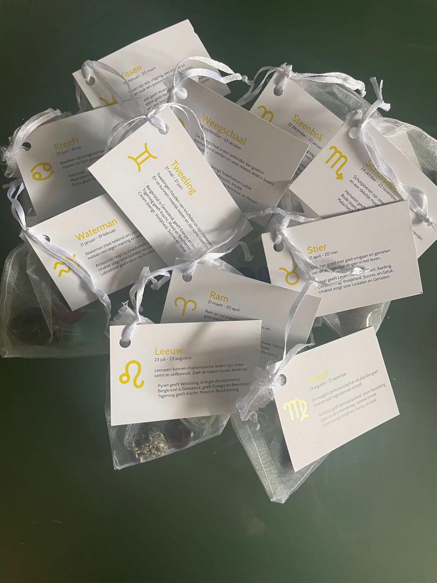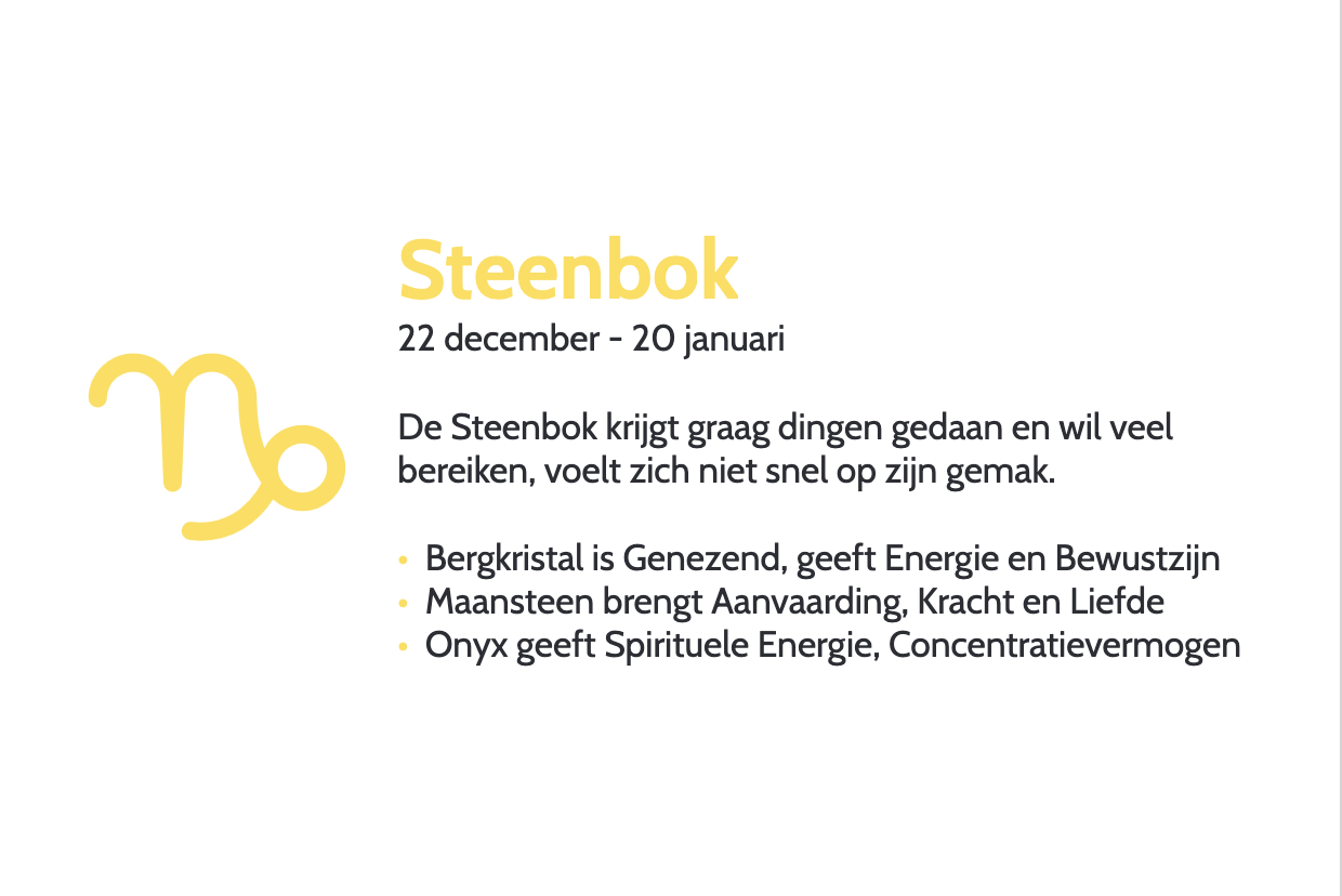 Zakje met stenen passend bij sterrenbeeld Steenbok (22 december – 20 januari). De Steenbok krijgt graag dingen gedaan en wil veel