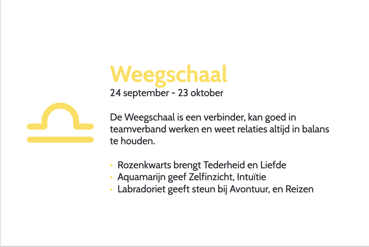 Zakje met stenen passend bij sterrenbeeld Weegschaal (24 september – 23 oktober). De Weegschaal is een verbinder, kan goed in